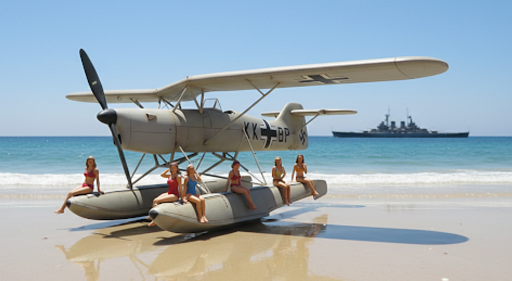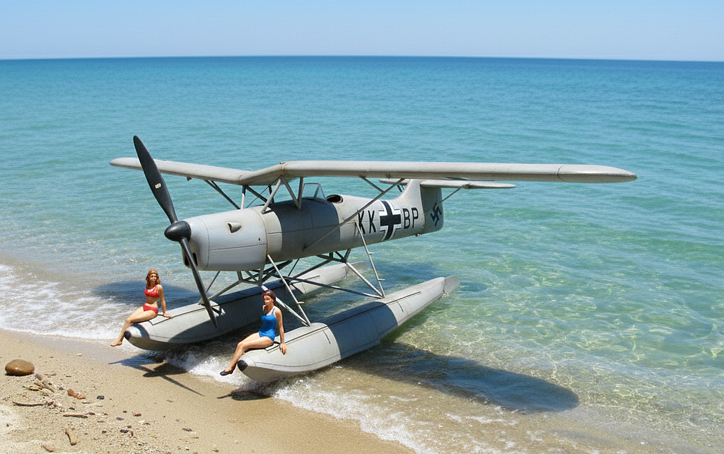 ... a jelikož v té době se Německu dařilo, rozhodlo se Arado vydat adventní kalendář pro bojiště i zázemí na rok 1941 s názvem Gott gegen England...proto vrchní fotograf Arada pozval k Baltu členky Hitlerjugend, aby mu s novým Aradem zapózovaly...jenže...